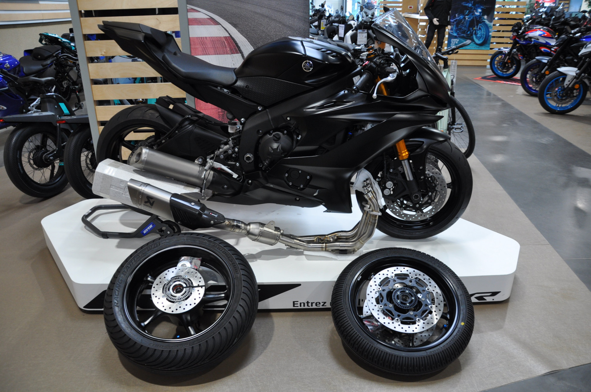 YZF R6 "RACE" Neuve 0 km. Moto Compétition sans carte grise. Vendue avec un pack complet de roues pluie et ligne Akrapovic. Tout est 100% neuf.